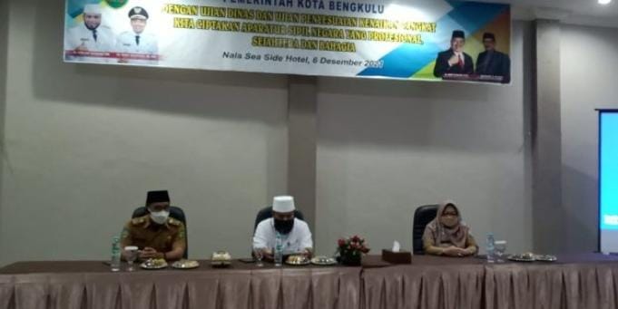 BencoolenTimes.com, – Walikota Bengkulu Helmi Hasan menitip pesan kepada aparatur sipil negara (ASN) baik itu di provinsi, kota dan kabupaten di Provinsi Bengkulu yang sedang mengikuti ujian kenaikan pangkat tahun 2021 di hotel nala sea side, Senin (6/12/2021).