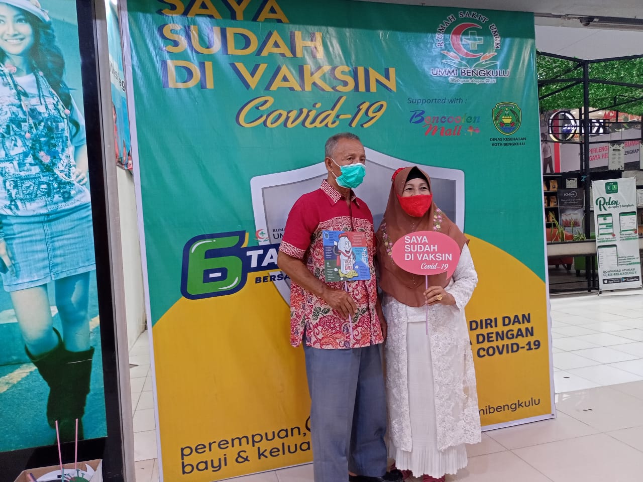 Vaksinasi tahap ke-2 ini dilaksanakan selama dua hari dimulai Selasa (18/5/2021). Kegiatan ini berkat kerjasama Dinkes dengan Rumah Sakit Ummi dan Bencoolen Mall.