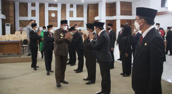 BencoolenTimes.com, – Wakil Gubernur (Wagub) Bengkulu Rosjonsyah pimpin Pengambilan Sumpah dan Pengukuhan Jabatan kepada 69 pejabat eselon di lingkungan Pemprov Bengkulu, di Gedung Serba Guna (GSG) Pemprov Bengkulu, Jumat (8/10/2021) sore.