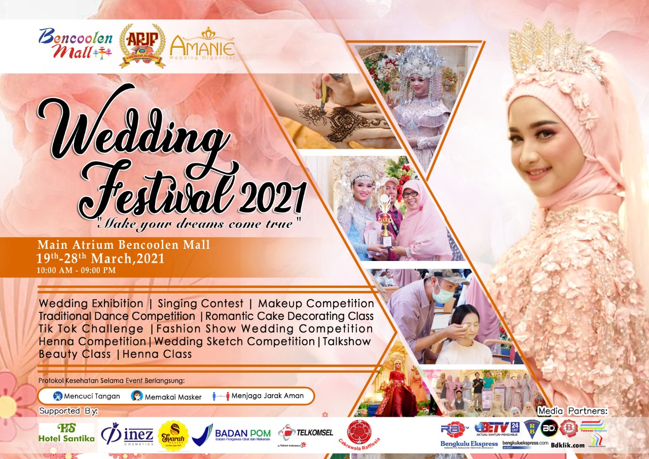 BencoolenTimes.com, – Bencoolen Mall akan adakan Event Wedding Festival 2021 di dengan tema “Make Your Dreams Come True” yang dimulai 19 hingga 28 Maret 2021 pukul 10.00.WIB – 21.00 WIB di Atrium Bencoolen Mall, Rabu (17/3/2021).