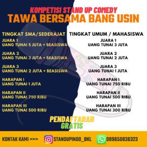 Para peserta kompetisi stand up comedy Tawa Bersama Bang Usin ini dapat merebutkan hadiah total Rp 20 juta.