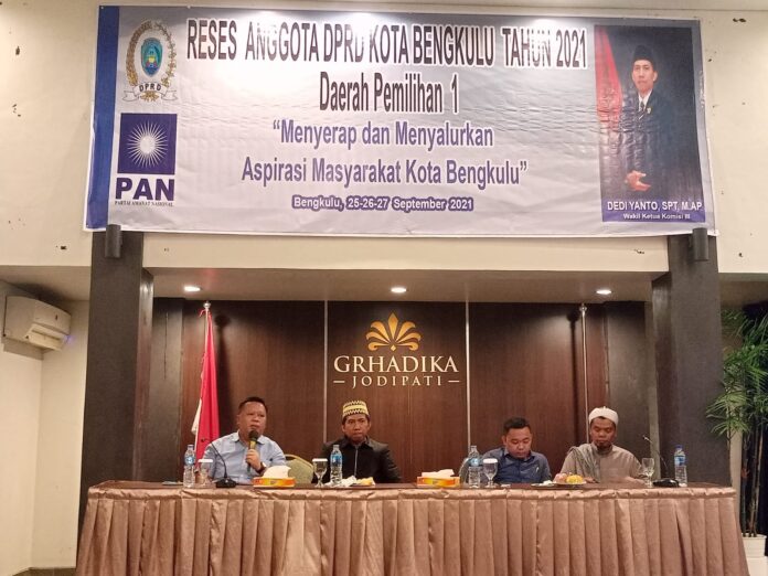 Reses yang dilangsungkan di Hotel Jodipati II, Minggu, (26/9/2021). Dediyanto menargetkan masyarakat Kota Bengkulu menularkan kebaikan kepada orang lain.