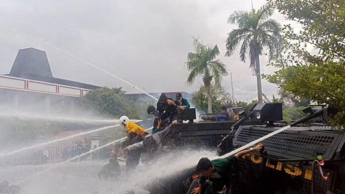 BencooolenTimes.com, – Massa aksi tergabung dari Organisasi Kepemudaan PMII, HMI, GMNI, PMKRI, GMKI, BEMNUS, dan Forum Mahasiswa Silampari Provinsi Bengkulu saat demo penolakan kenaikan BBM di Depan Gedung DPRD Provinsi Bengkulu ricuh, Selasa (13/9/2022).