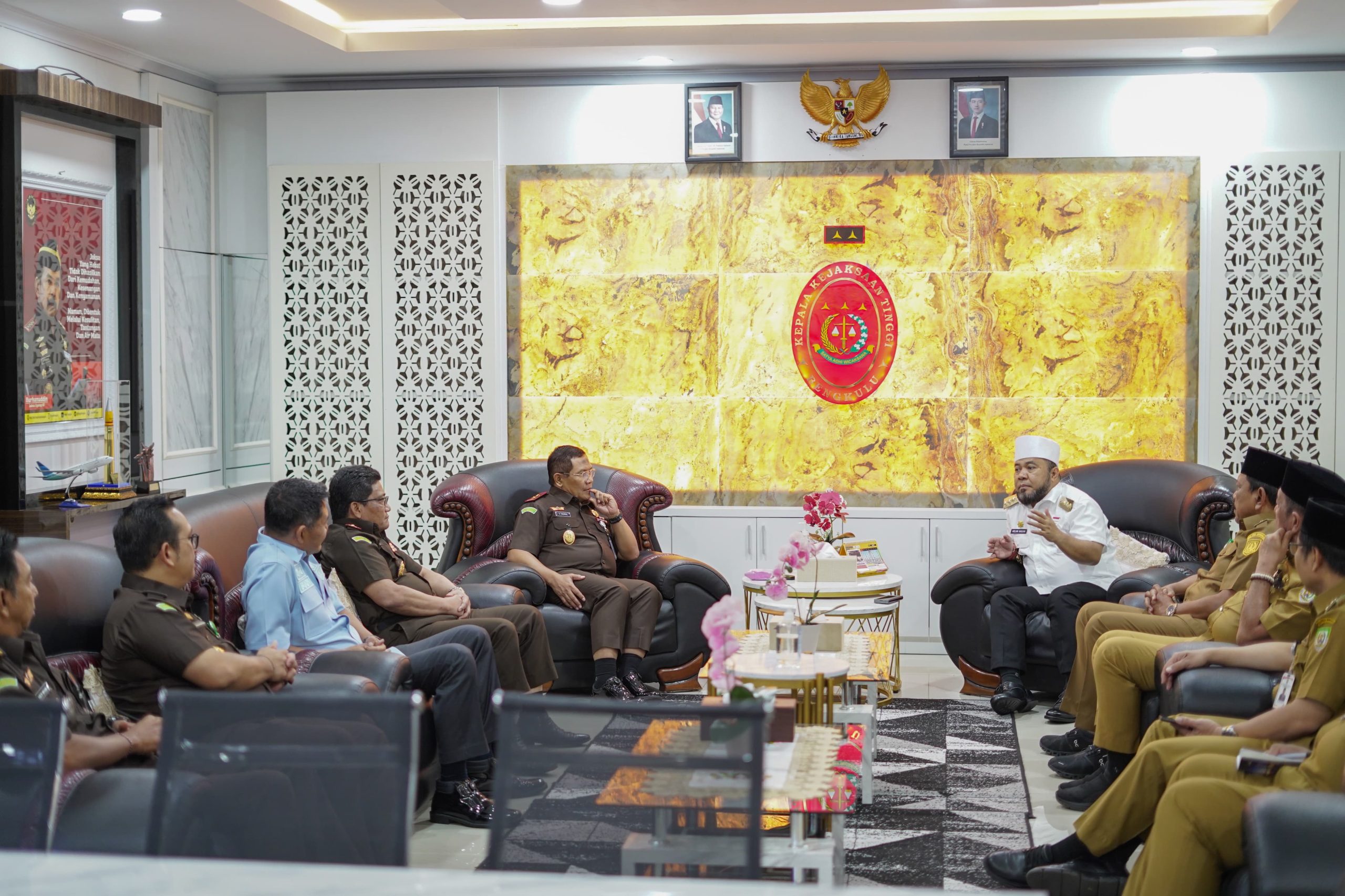 Gubernur dan Wagub Bengkulu, Helmi Hasan dan Mian, mulai melakukan kunjungan ke unsur Forkopimda Provinsi Bengkulu, salah satunya Kejaksaan Tinggi (Kejati) Bengkulu, Selasa, 4 Maret 2025.