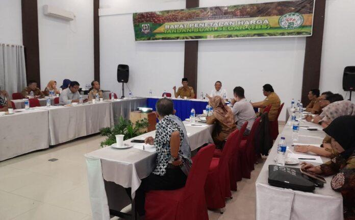 Rapat penetapan harga TBS kelapa sawit melibatkan Perusahaan Kelapa Sawit (PKS), Asosiasi-Asosiasi, serta stakeholder terkait lainnya di Hotel Adeeva Pantai Panjang Bengkulu.