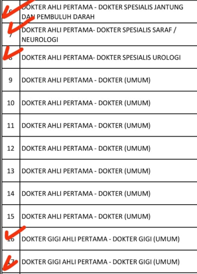Hingga menjelang penutupan, sambung Dheny, masih ada 5 formasi yang nihil peminat alias belum ada pendaftar. Masing-masing 2 formasi dokter gigi dan 3 formasi dokter spesialis.