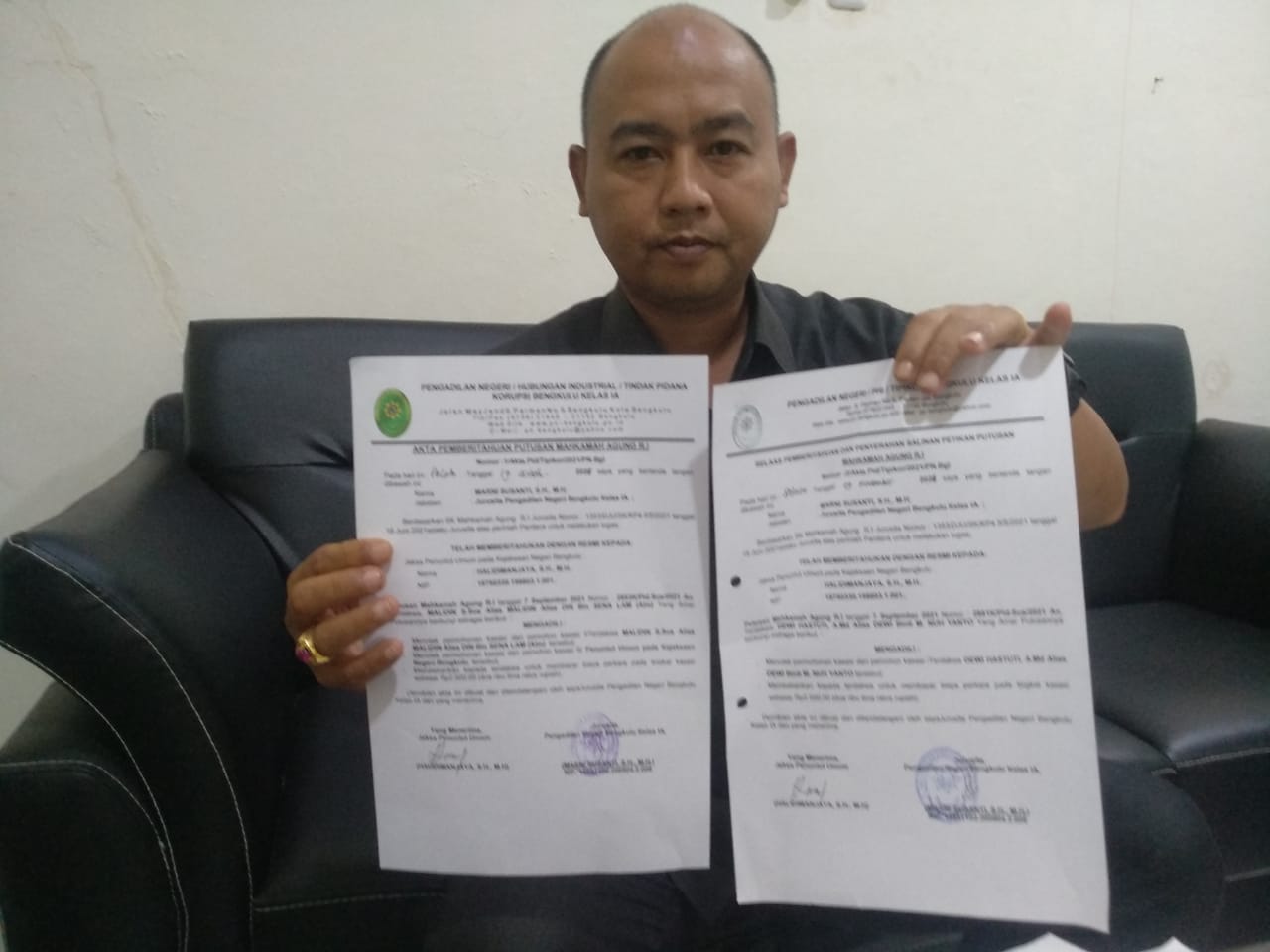 Humas Pengadilan Negeri Bengkulu, Riswan Supartawinata saat diwawancarai di Pengadilan Negeri (PN) Bengkulu, Rabu (24/11/2021) membenarkan bahwa pihaknya telah menerima petikan putusan dari Mahkamah Agung dua terdakwa kasus tersebut.