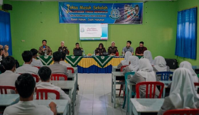 BencoolenTimes.com, – Guna meminimalisir kenakalan remaja, Kejaksaan Tingggi (Kejati) Bengkulu melalui program Jaksa Masuk Sekolah (JMS) mendatangi SMA Muhammadiyah Kota Bengkulu dalam rangka memberikan edukasi dan penyuluhan hukum terhadap siswa maupun siswi, Selasa (8/2/2022).