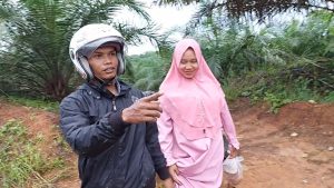 “Beginilah mas, kondisi desa kami. Jalannya jelek sekali. Pernah ada yang hamil, melahirkan di jalan. Alhamdulillah, kami dibantu pak Helmi,” kata Suminah, ibu Fisa.
