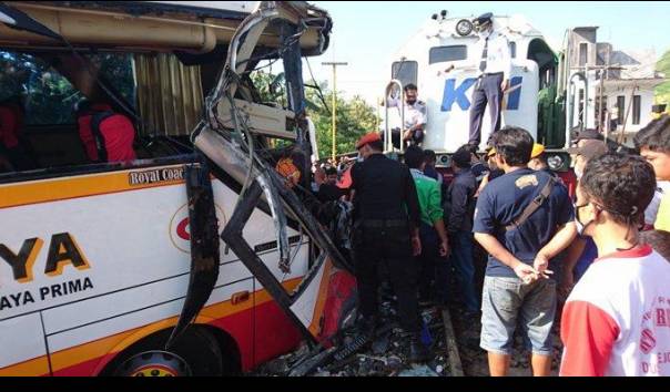 Namun nahas. Saat bus kedua yang mengangkut 41 penumpang akan melewati rel tanpa palang di Desa Ketanon datang kereta dari selatan sehingga tabrakan tak terelakaan.