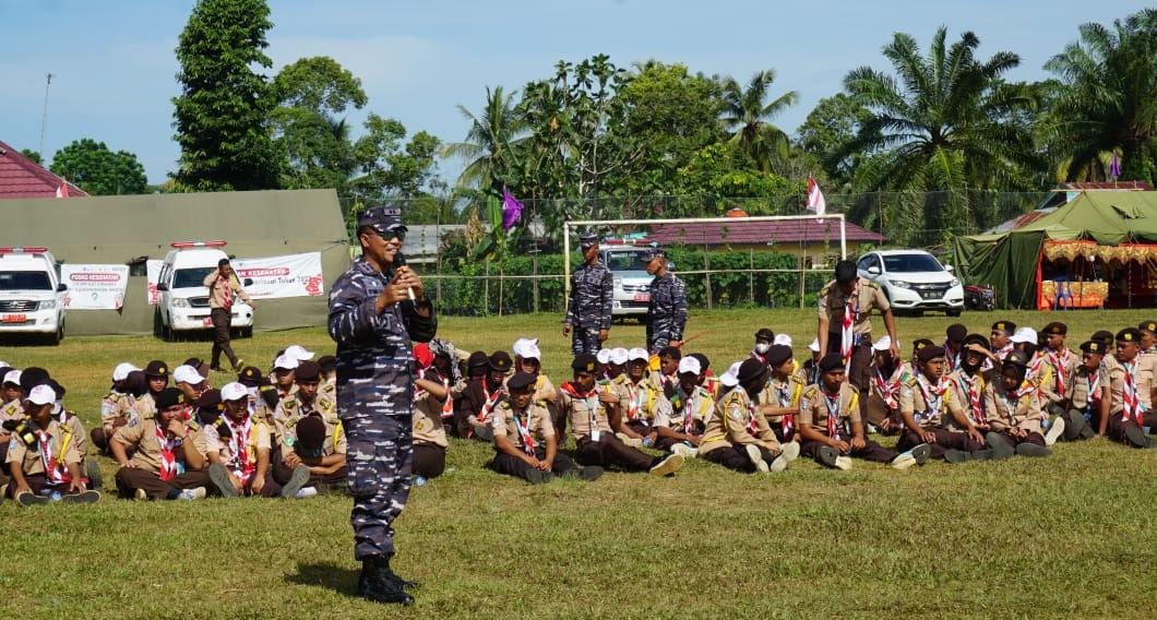 BencoolenTimes.com, – Untuk meningkatkan semangat anak bangsa menjaga kedaulatan NKRI, Pangkalan TNI Angkatan Laut Bengkulu memberikan materi wawasan Kebangsaan, Kedisiplinan dan Cinta Tanah Air pada Kemah Bela Negara Nasional di Lapangan Sepak Bola Bukit Peninjauan II Sukaraja Kabupaten Seluma, Selasa (20/12/2022).