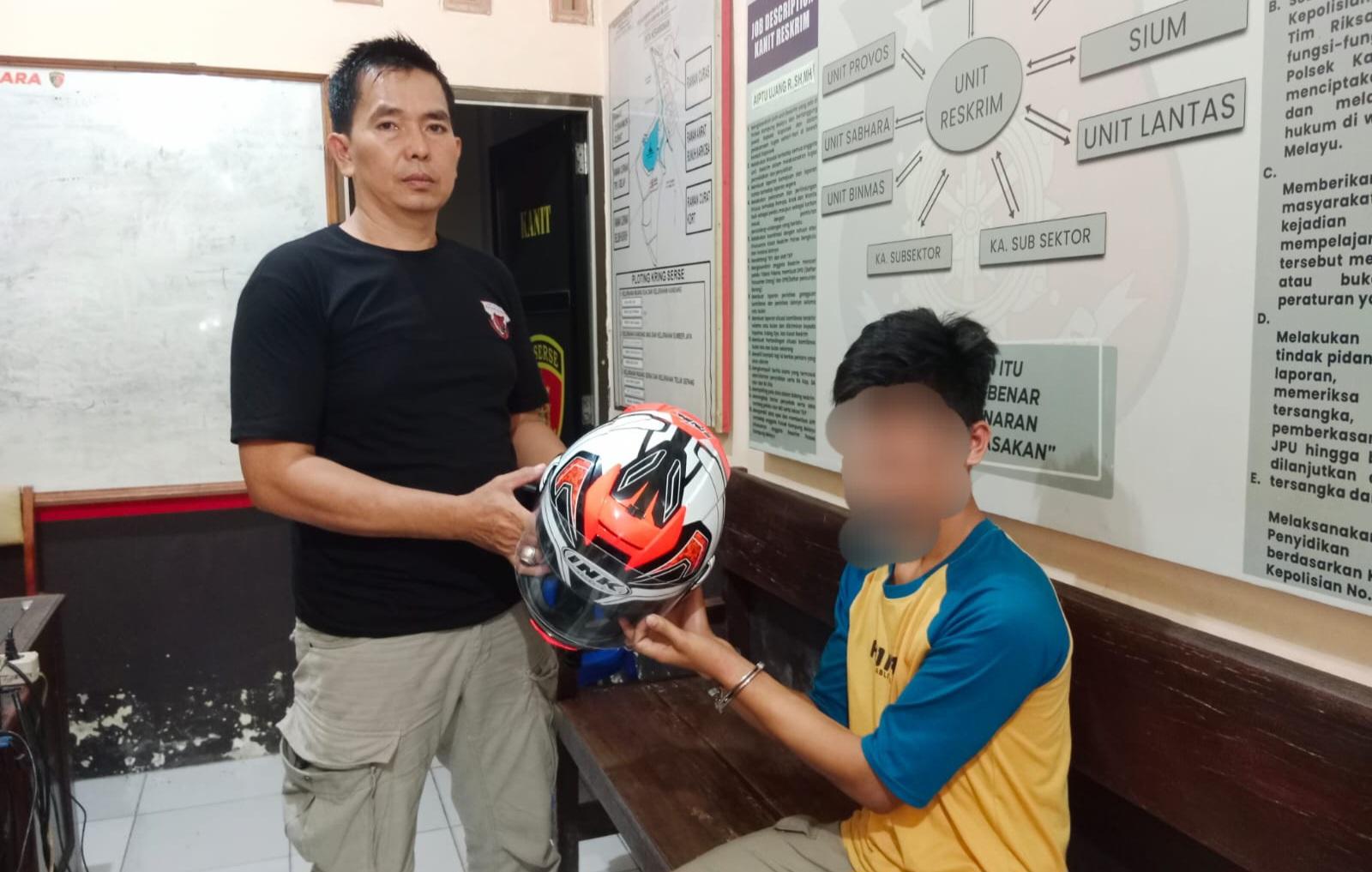 “Saat sampai di Panorama, kita melihat Wi ini sedang nongkrong dan membawa helm hasil curian milik korban, sehingga langsung kita ringkus,” ungkap Rahmat.