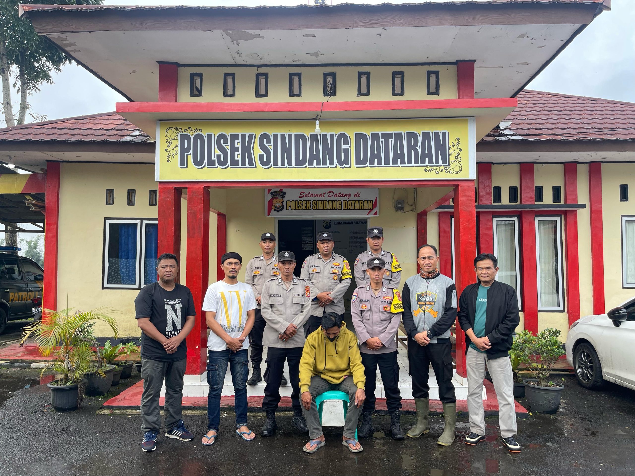 Anggota Polsek Sindang Dataran yang mendapatkan laporan langsung melakukan penyelidikan dan memeriksa saksi. Setelah itu, pelaku mengarah kepada RI yang merupakan warga Desa Pelalo, Kecamatan Sindang Kelingi dan langsung dilakukan penangkapan.(OIL)