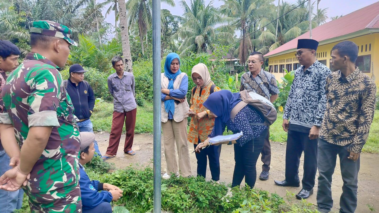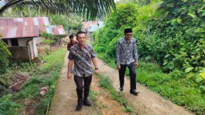 Camat Pino Raya Kabupaten Bengkulu Selatan Sulaiman Efendi didampingi Kades Kembang Seri Halimin saat melaksanakan sertifikasi kegiatan DD TA 2023 di Desa Kembang Seri Kecamatan Pino Raya.