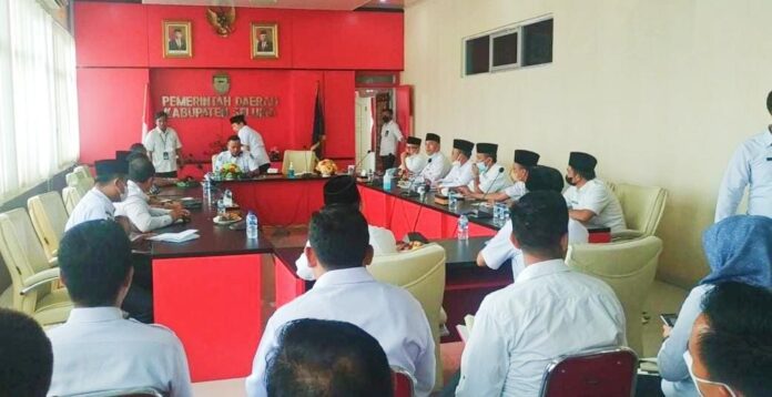 BencoolenTimes.com,– Bupati Seluma Erwin Octavian gelar rapat terkait pencapaian vaksinasi di Kabupaten Seluma, Provinsi Bengkulu, Kamis (24/3/2022).