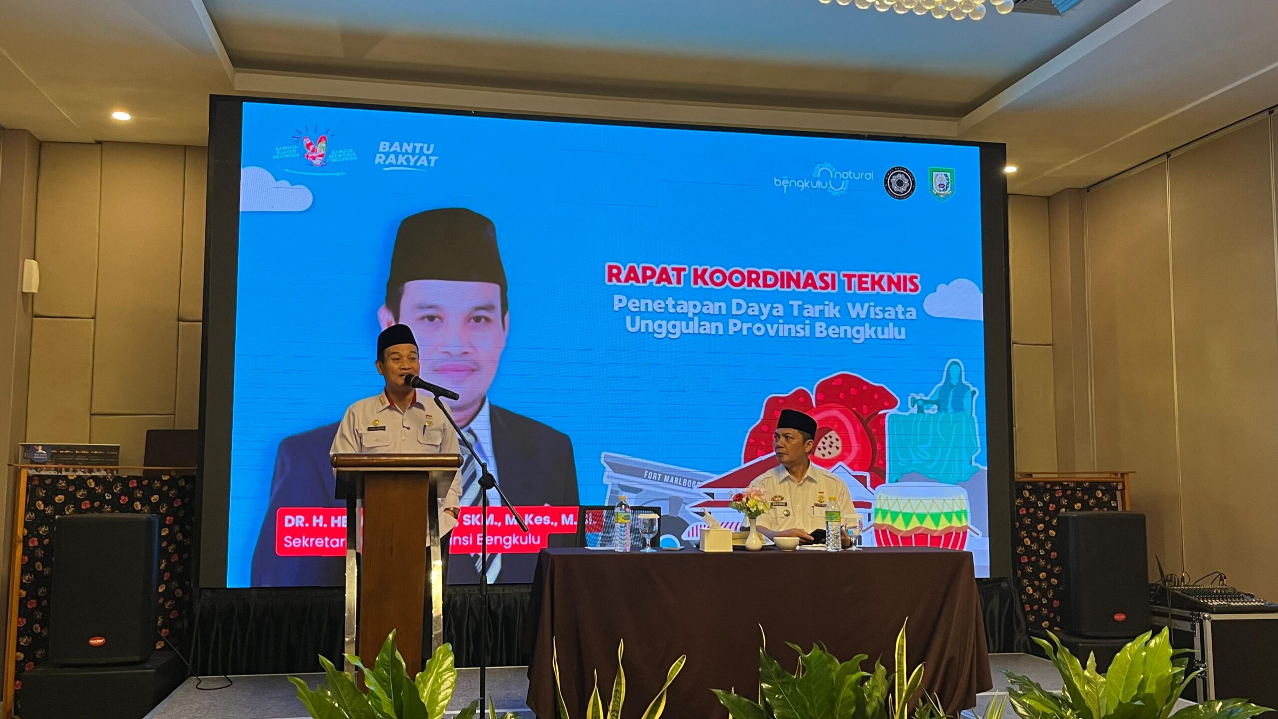 Ini disampaikan Penjabat (Pj) Sekretaris Daerah (Sekda) Provinsi Bengkulu, Herwan Antoni saat memimpin sekaligus membuka Rapat Koordinasi Teknis (Rakornis) pembahasan rencana penetapan daya tarik wisata Provinsi Bengkulu, di Hotel Two K Azana, Rabu, 27 Agustus 2025.