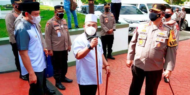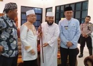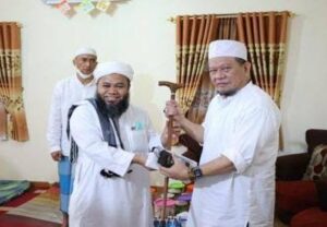 Helmi saat memberikan hadiah tongkat ke Ustad Das’ad Latif