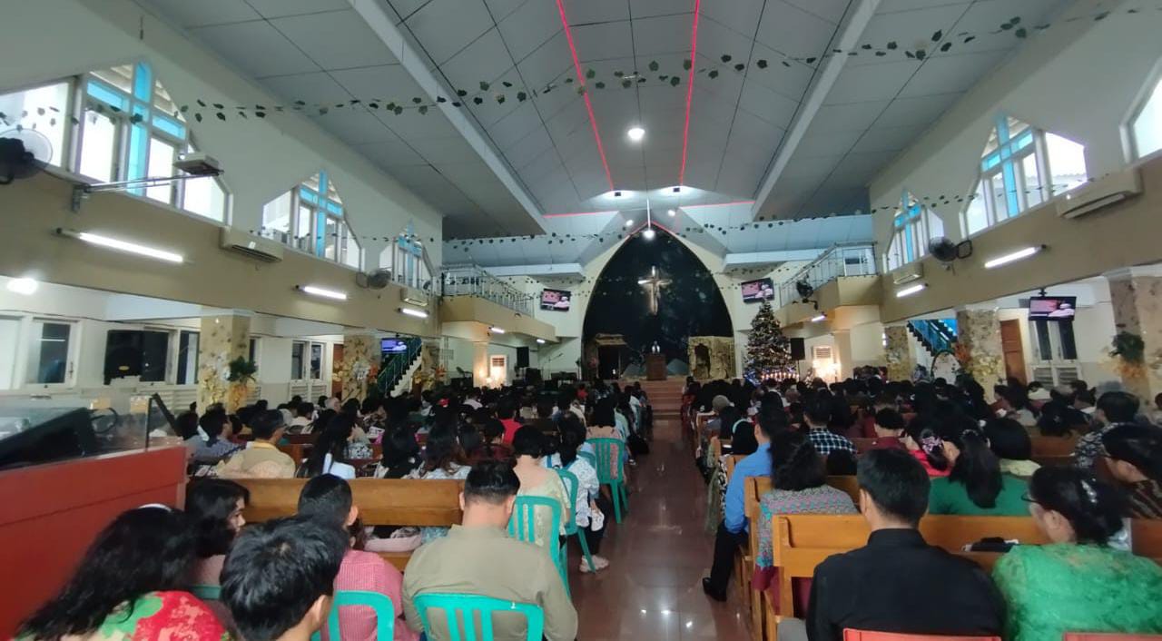 Sementara itu, Romo Florentinus Suryanto SCJ, di Gereja Katolik St. Yohanes, menggarisbawahi pentingnya pesan Natal yang selaras dengan tema yang diusung Persekutuan Gereja-gereja Indonesia (PGI) tahun ini ‘Marilah kita sekarang pergi ke Betlehem’ (Lukas 2:15).