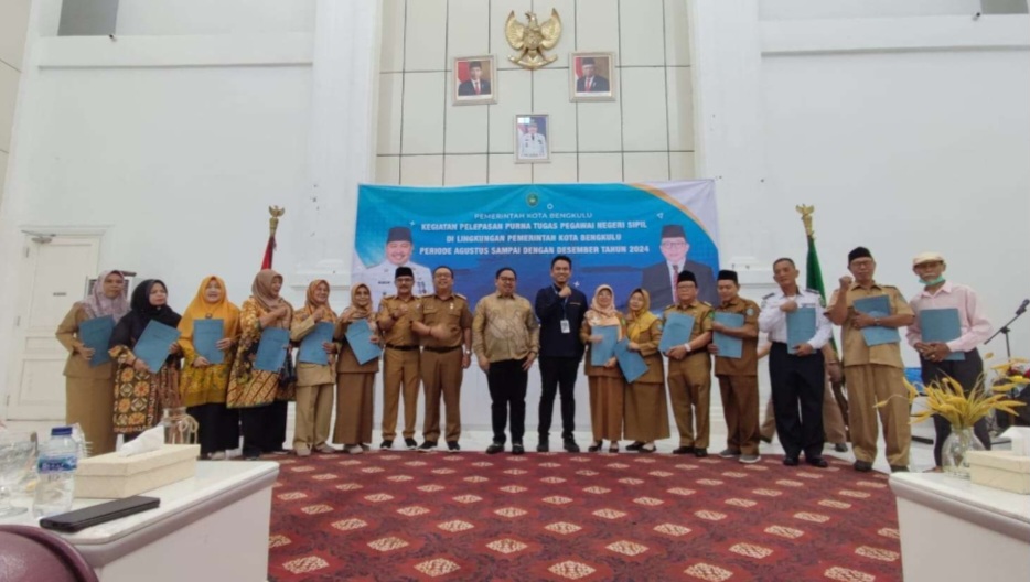 BencoolenTimes.com, – Pemerintah Kota Bengkulu melalui Badan Kepegawaian dan Pengembangan Sumber Daya Manusia (BKPSDM) melaksanakan pelepasan 73 purna tugas Aparatur Sipil Negara (ASN) dan menyerahkan secara langsung Surat Keputusan (SK) di lingkungan Pemerintah Kota Bengkulu periode Agustus sampai dengan Desember tahun 2024, di Balai Kota Merah Putih, Selasa, 2 Juli 2024.