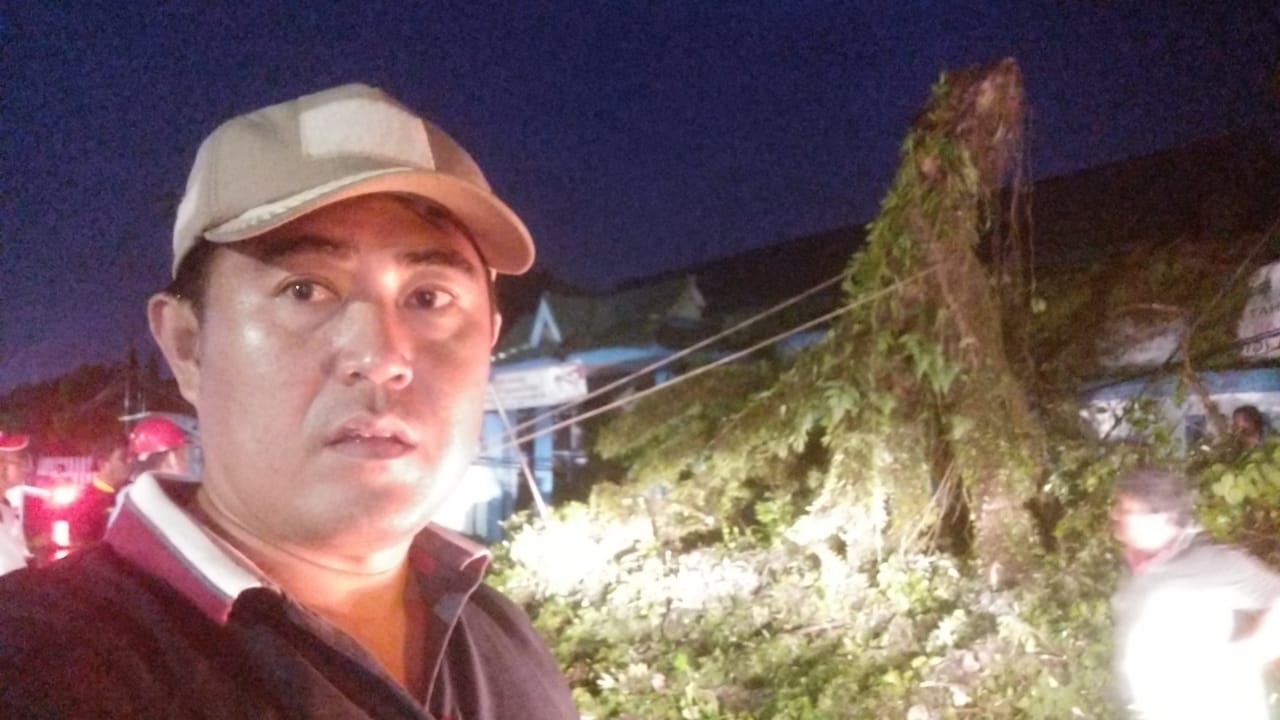 “Tim Pemangkasan DLH masih bekerja menyingkirkan pohon tumbang di depan SMPN 2 Sawah Lebar. Pohon di halaman SMP tumbang ke arah jalan, malam ini dirapikan, pembersihan kemungkinan akan dilanjutkan besok pagi dengan armada tambahan,” kata Medy. (Bay)