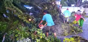 Pohon yang tumbang ke arah jalan tersebut untuk sementara dirapikan supaya tidak mengganggu aktifitas dan arus lalulintas di kawasan tersebut dan keesokan paginya batang pohon yang tumbang akan dibersihkan.