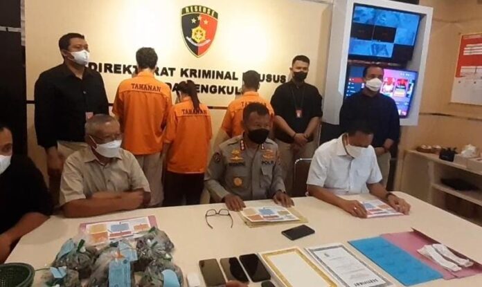 Direktur Reskrimsus Polda Bengkulu, Kombes Pol Aries Andhi mengatakan, ketiga terduga pelaku memperjual belikan bibit sawit yang tidak sesuai dengan standar mutu dan sertifikat yang ditetapkan penyedia bibit asli dari Badan Usaha Milik Negara (BUMN) yang ditunjuk.