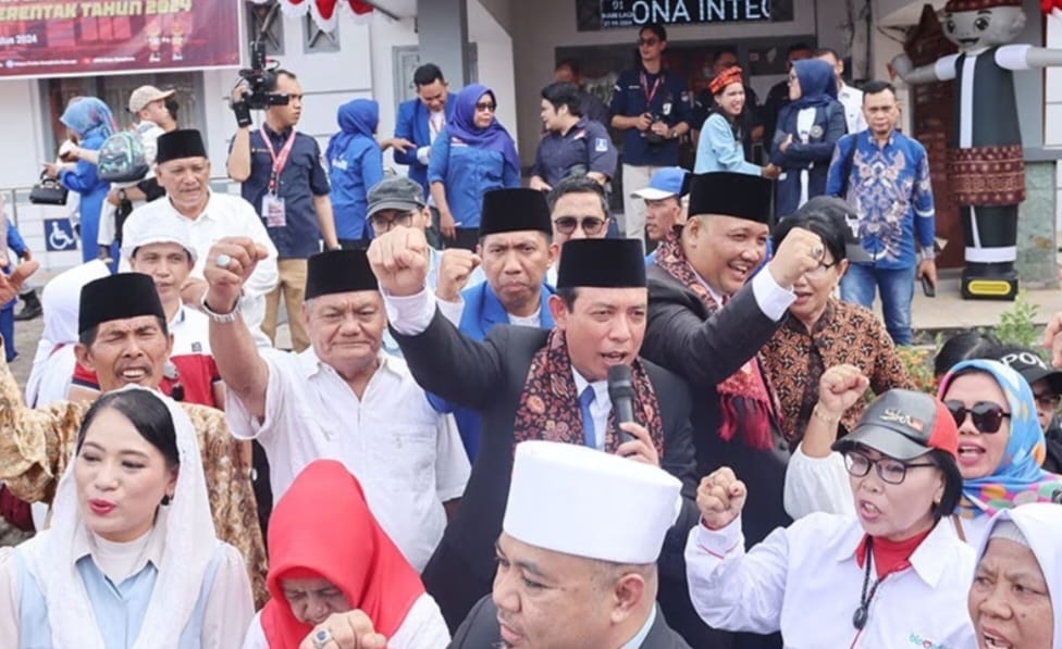 BencoolenTimes.com – Ratusan massa yang terdiri dari simpatisan, ormas pendukung, para tokoh masyarakat, tokoh adat maupun agama menggetarkan Kantor Komisi Pemilihan Umum (KPU) Kota Bengkulu saat mengantarkan pasangan calon Walikota Bengkulu Dedy Wahyudi dan Wakil Walikota Bengkulu Ronny Pembriyanto L Tobing mendaftar sebagai pasangan calon di Kantor KPU Kota Bengkulu, Selasa siang, 27 Agustus 2024.