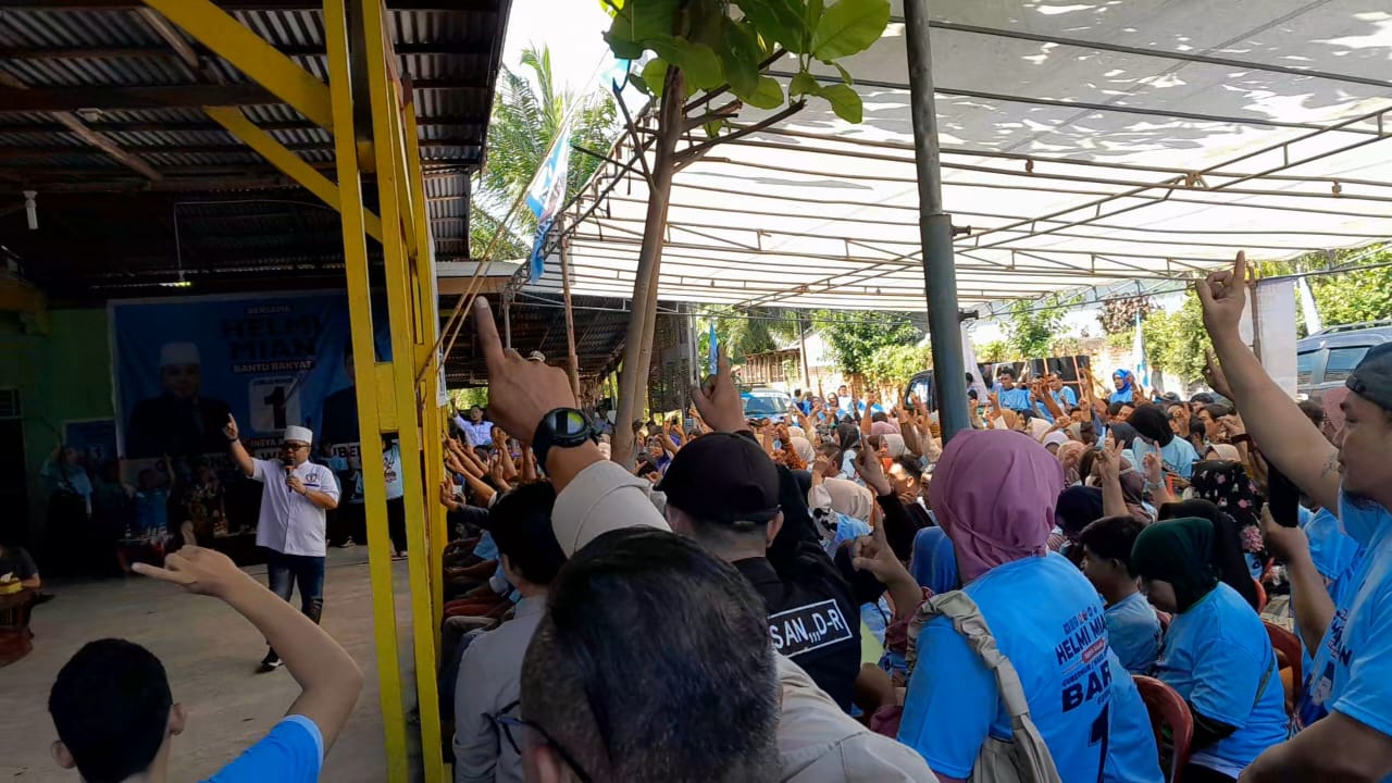 ”Insya Allah Jalan Provinsi yang hancur akan kita muluskan. Itulah tujuan kita berkumpul di sini bukan hanya untuk memenangkan Helmi-Mian tapi untuk sama-sama bantu rakyat agar mendapatkan hak-haknya,” jelas Helmi.
