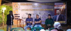 BencoolenTimes.com, – Anggota DPRD Provinsi Bengkulu Usin Abdisyah Putra Sembiring, SH reses ke III menyerap aspirasi masyarakat di Daerah Pemilihan (Dapil) I Kota Bengkulu tepatnya Kelurahan Lingkar Barat, Kamis (24/11/2022).