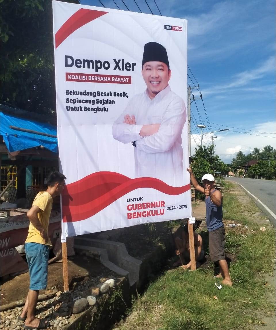 Spanduk yang dipasang pendukung Dempo Xler, kandidat independen dalam Pemilihan Gubernur (Pilgub) 2024, menyoroti semangat kolaborasi antara calon dan rakyat dalam membangun Bengkulu ke depan. Dengan menegaskan dukungan pada ‘Koalisi Bersama Rakyat’, pendukung Dempo Xler menunjukkan keyakinan mereka terhadap gagasan independen dalam mengelola provinsi.
