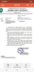 Surat edaran nomor 660/119/DLH/2021 yang dibuat 17 Maret 2021 itu merupakan tindak lanjut dari surat Walikota Bengkulu nomor 660/87/DLH/2021 tanggal 24 Februari 2021 perihal kebersihan lingkungan.