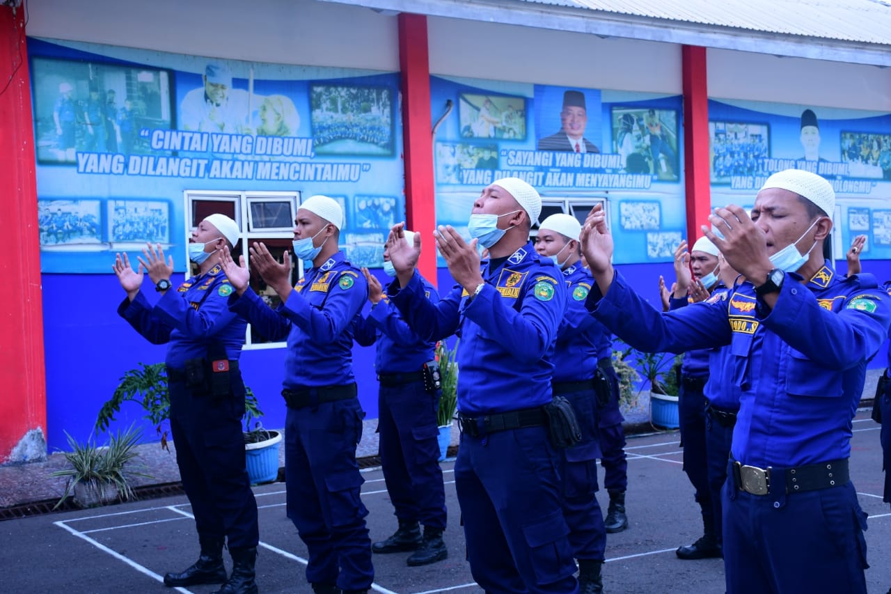 Biasanya para personel damkar mengenakan baret ketika melaksanakan apel pagi, tapi kali ini pandangan mata teralihkan dengan penggunaan peci putih yang dilakukan para personelnya, bahkan di depan Walikota Helmi para personel tersebut melantunkan ayat-ayat Allah yakni dengan berselawat Tibbil Qulub.