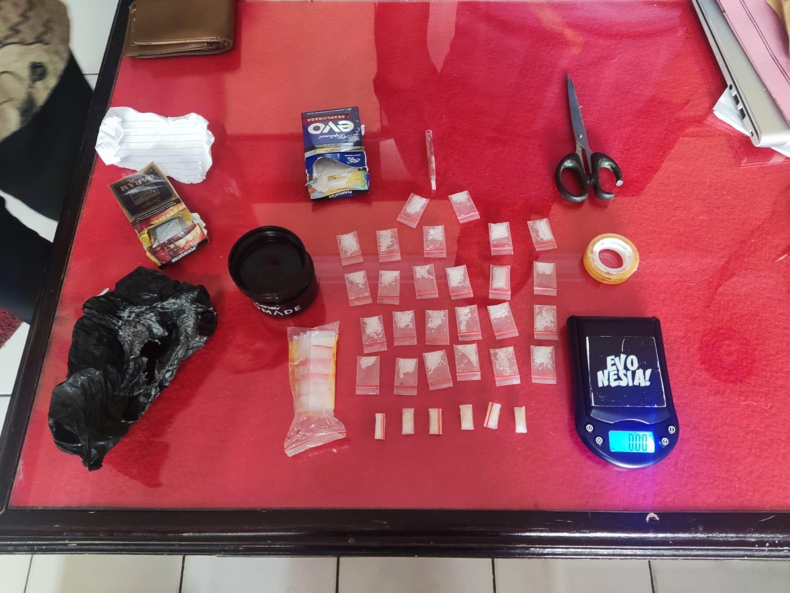 Dari tangan RA ini pula pihaknya mengamkan sebanyak 31 (Tiga Puluh Satu) Paket Narkotika gol I jenis Sabu dibungkus Plastik Klip Bening warna. 1 (satu) unit Alat timbang Elektrik., 1 (satu) unit sepeda motor merek Honda beat warna hitam, dan 1 (satu) unit Hp merek oppo warna hitam.