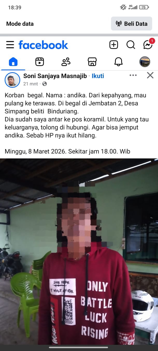 Viral warga Musi Rawas diduga dibegal menjelang berbuka puasa pada Minggu, 8 Maret 2026, yang diunggah melalui Akun Medsos Facebook (FB) atas nama Soni Sanjata Masnajib.