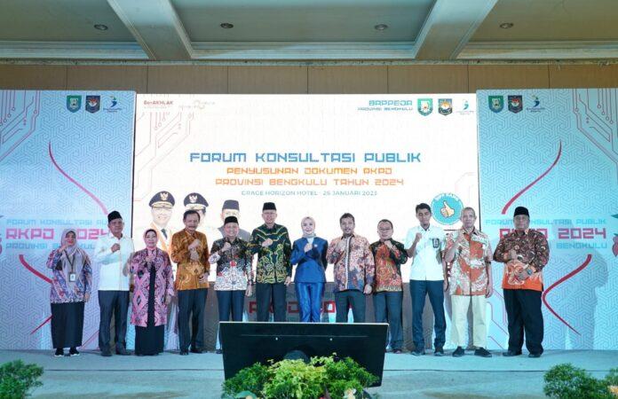 BencoolenTimes.com, – Wakil Gubernur (Wagub) Bengkulu Rosjonsyah membuka Forum Konsultasi Publik Rancangan Awal Rencana Kerja Pemerintah Daerah (RKPD) Provinsi Bengkulu Tahun 2024 di Grage Hotel Bengkulu, Kamis (26/01/2023).