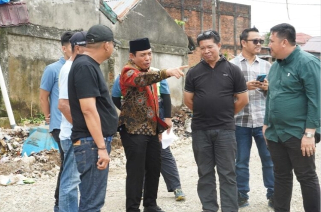 Saat di lokasi pembangunan, Dedy Wahyudi didampingi Pengelola PTM dan Mega Mall, Irwandi Putra serta General Manager RBTV M. Tasron.