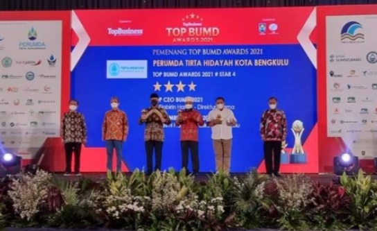 Tiga penghargaan itu, salah satunya ialah penghargaan kategori Top Pembina BUMD dalam hal ini Walikota Bengkulu Helmi Hasan, dan hebatnya penghargaan ini ialah ke-3 kalinya yang ia dapatkan dari tahun 2019-2021. Kemudian kategori Top BUMD 2021 dalam hal ini PDAM Tirta Hidayah Kota Bengkulu. Selanjutnya kategori Top CEO BUMD dalam hal ini Direktur PDAM Sjobirin Hasan.