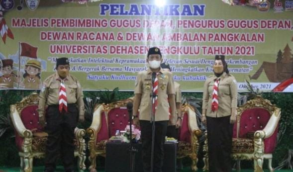 Ini disampaikan Dedy dalam samburannya saat menghadiri acara pelantikan Majelis Pembimbing Gugus Depan (Mabigus), Pengurus Gugus Depan, Dewan Racana dan Dewan Ambalan Pangkalan Universitas Dehasen Masa Bakti 2021-2023 di Aula Universitas Dehasen, Sabtu (23/10/2021).